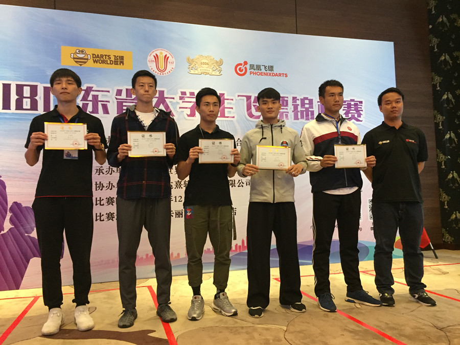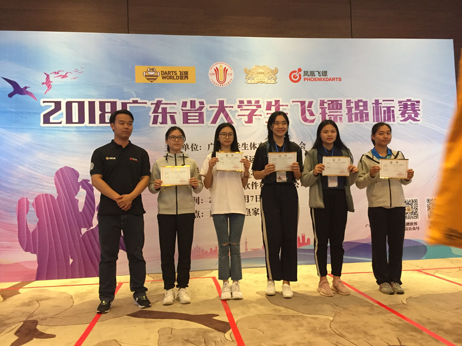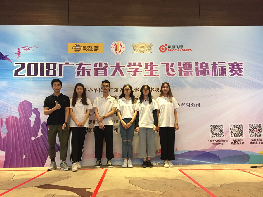 我校飞镖运动经过两年的推广并在本学期以课程形式面向全体学生,重重选拔后,在林虹全、孙加记教练的指导下,经过一学期系统训练,最终派出6名选手参与比赛,分别是梁卓鸿(),冼锡标,林晓璇,林舒娜,林子荞和卢艳芳同学。最终,林舒娜和冼锡标同学进入十六强,卢艳芳和梁卓鸿同学打入8强,卢艳芳同学获得女子个人301项目第五名,梁卓鸿同学获得男子个人高分赛项目第六名。