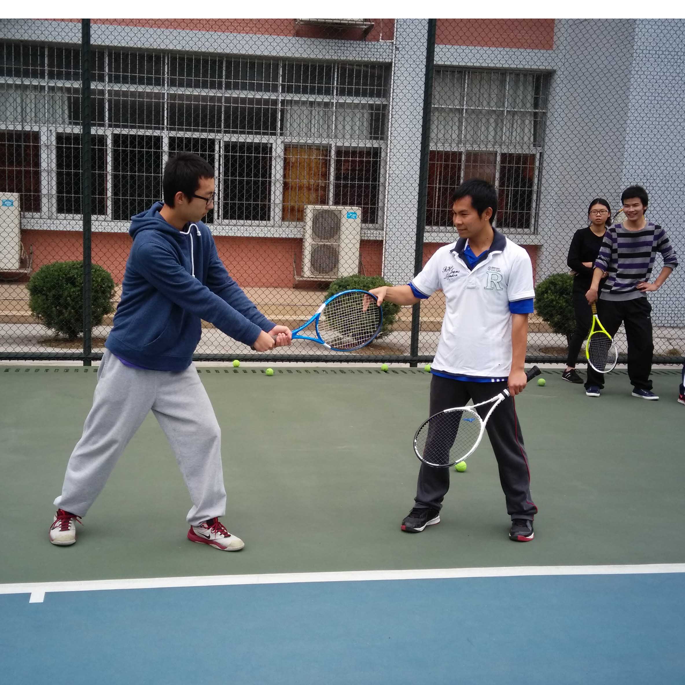 林天皇老师指导学生打网球