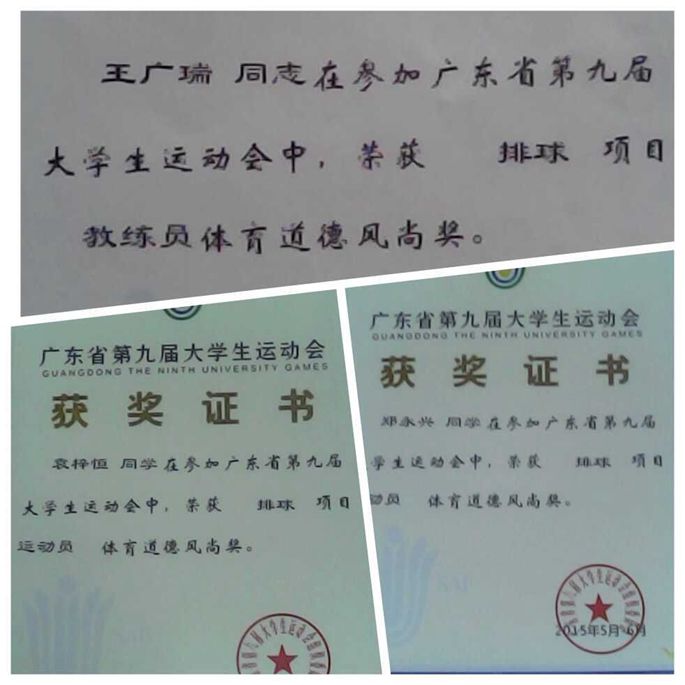 6月5-12日,广东省第九届大学生运动会田径比赛在大学城华工校区田径场举行,我院法律系梁绮文同学经过顽强拼搏,在女子甲组铅球项目比赛中,获得了女子铅球第四名。我院王广瑞老师在广东省第九届大学生运动会中荣获排球项目教练员体育道德风尚奖,袁梓恒、邓永兴两位同学在广东省第九届大学生运动会中荣获排球项目运动员体育道德风尚奖。