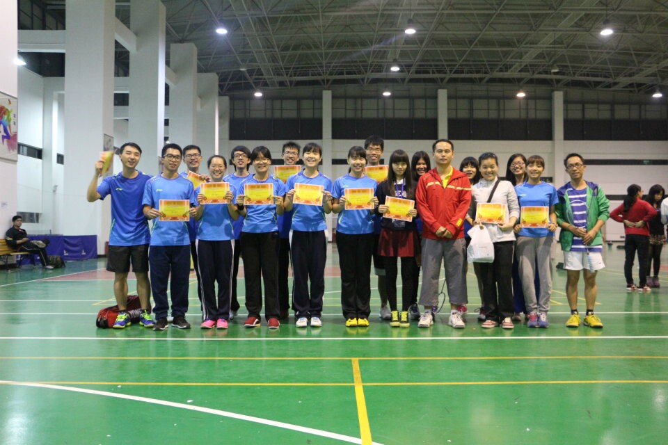 2014年11月3日,由我院学生社团联合会举办、羽毛球协会承办的新生杯羽毛球比赛在校体育馆如期举行。此次比赛旨在更好地展示社团面貌,加强羽毛球爱好者的交流 。参加此次比赛的队伍有七系和国际学院。初赛以15分制记球法,选手三局两胜淘汰制进行比拼,团体以积分制的形式抢夺进入决赛的资格。在为期两个星期的初赛中,队员们挥洒汗水,为自己的队伍抢夺机会进入决赛。最后,由经济系、外语系、会计系和计算机系四个系突破重围进入决赛。 决赛采用了21分制的形式进行。决赛当天,场内队员们挥舞着球拍,点杀、扣杀、网前放小球、劈吊、追身球,战况激烈、精彩纷呈,展现了高超的球技及冷静精准的判断。队员经过激烈角逐,最终为各自的队伍取得好的成绩。本次比赛,队员们积极参与,相互配合,不论输赢,都收获了一份友谊;同时也丰富了校园文化生活。