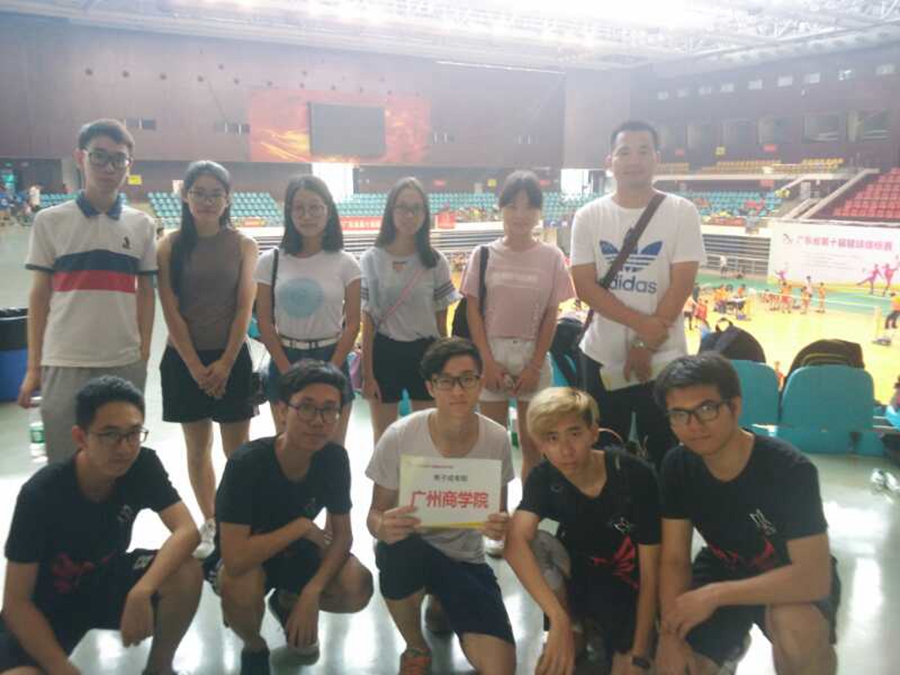 广州商学院毽球协会在学校公共体育部的大力支持下,成立了校队,赛前积极开展训练和备战准备,挑选了由甄仪思,胡恩锐,林濡纳,王晶,陈锐传,陈理春等12名队员组成队伍代表广州商学院参加了本次锦标赛,由公共体请部柯明老师和毽球协会指导老师黄锦煜共同带队前往。5月28日首场,广州商学院队对阵广东培正学院队,本场比赛的第一小局,一开始双方对场地都有些不习惯,双方分数都很近。第一小局进行到一半,广州商学院队甄仪思队长抓住对面的弱点,利用开球开向对面基本功不稳的队手拉开了分数,最终第一局比分以15:12获得胜利。紧接着第二小局开始,广东培正学院队换上了全体主力。一开始广东培正学院队展开了猛烈的进攻,我方选手林濡纳试图通过拦网防守拦住对手的踩球,利用接下来的球升给主攻手展开反击。由于平时训练积极刻苦,长时间的磨损,比赛途中主攻手甄仪思的武器毽球鞋鞋底踩球踩到脱胶,整个鞋底掉了一半。比赛不得不暂停,甄仪思队员换上了陈理春队员的毽球鞋。由于不习惯毽球鞋,进攻得不到很好的发挥,第二小局以12:15败了下来。比赛展开到第三小局,一开始广东培正学院队领先了广州商学院队4分。随后培正队的几次猛烈进攻,被广州商学院队胡恩锐队员迅捷的反应与超快的移动速度接住,然后迅速展开反击,分数渐渐拉上来。当分数到14:11的时候,眼看只差一分即将抓住胜利的尾巴。但很可惜,最终被广东培正学院队反超,16:18我校队战败。5月29日次日,广州商学院队迎战广州一班癫佬队。对手是广州市有名的毽球俱乐部,双方差距太明显,最终以0:2我校队战败。