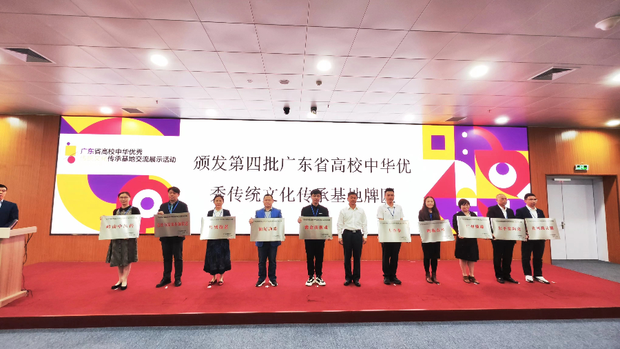我校太极拳项目获批广东省第四批高校中华优秀传统文化传承基地,广东省教育厅二级巡视员邱克楠为我校太极拳项目颁发了基地牌匾。