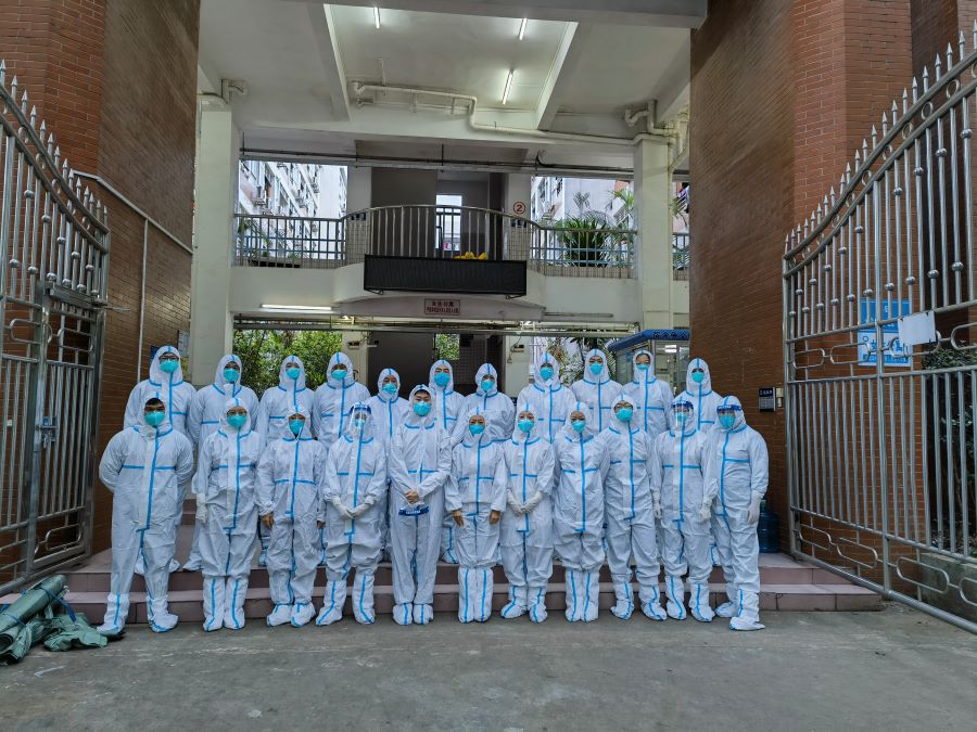 抗疫突击队积极投身疫情防疫工作,23位“逆行者”再次奔赴抗击疫情的第一线,充分彰显了体育人的爱心善意和责任担当。义无反顾冲锋在前,充分发挥了体育人积极向上,顽强拼搏精神,成为抗疫中的重要力量!突击队员克服了高温天气、断崖式降温天气的困难,在保障每位突击队员安全的情况下,完成了封控宿舍楼学生的生活保障工作。突击队在组长沈翔的带领下,总结经验优化工作流程,按人按位按需进行定岗定量,组织有序,保障抗疫工作的安全高效,圆满完成了本次抗疫任务!